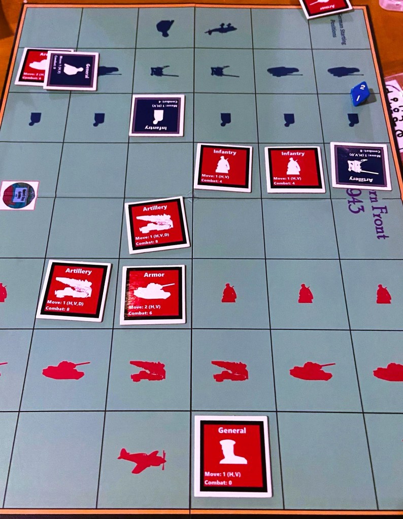 - 28 professionally printed 2×2″ military unit tiles (14 German, 14 Soviet)