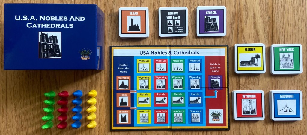 We have available a 4-player USA version of Nobles & Cathedrals, using images of buildings from several U.S. states that can be custom ordered. Please reach out to us through our CONTACT page if you are interested in this version.