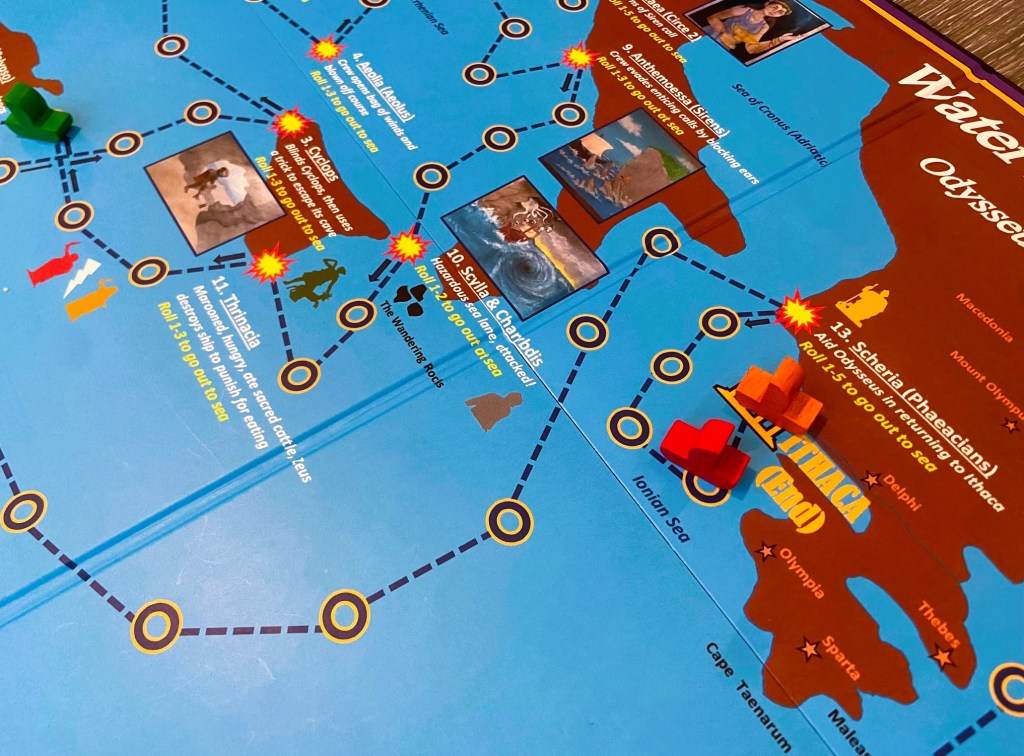 Based on Homer’s classic The Odyssey, Waterway to Freedom follows the hero Odysseus’s path from Troy to his home in Ithaca. Players move ships along Odysseus’s sea route and use cards of the Greek gods to help speed their own voyage and delay the voyages of their opponents. The board game, featuring original artwork by a teenage mythology enthusiast, includes both the major gods of ancient Greek mythology and the numerous encounters described in the story. Waterway to Freedom is a great introduction to this timeless tale and fun for players of all ages.